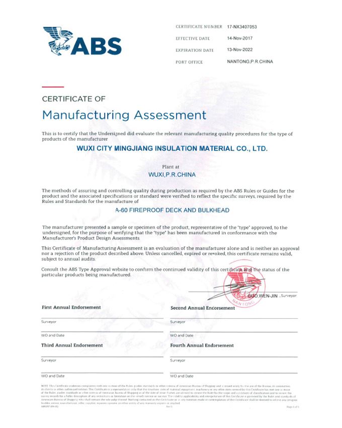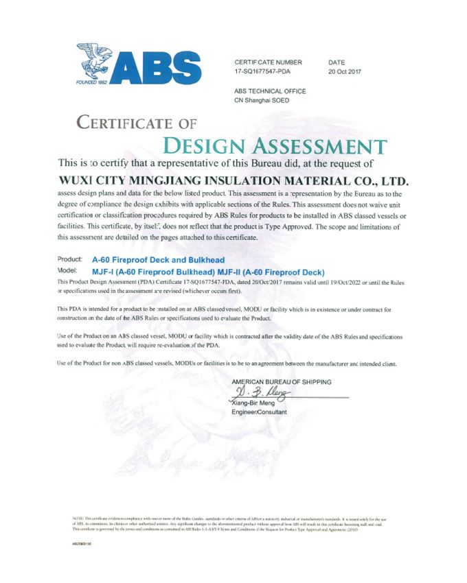 A 60級防火絕熱產(chǎn)品