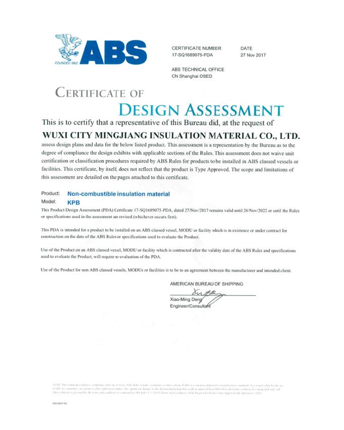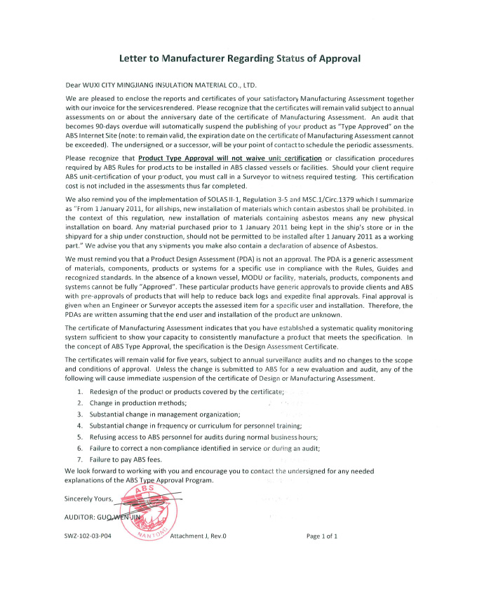 96K MJF ABS型式認(rèn)可證書(MA)